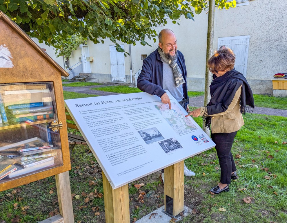 Mais l’inauguration du parc n’était qu’un des deux temps forts de la matinée. Beaune-les-Mines célébrait aussi l’installation de nouveaux panneaux historiques, nés d’un long travail de recherche et de passion entrepris par le conseil de quartier.
