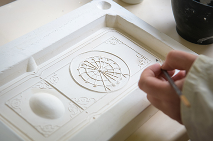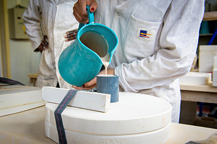 Après la confection des moules en plâtre, la barbotine y est coulée.