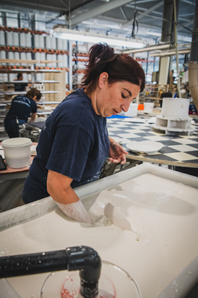 Une fois le lauréat sélectionné par le jury, c’est la manufacture La Fabrique qui a réalisé l’assiette en série, en reprenant tout le circuit de création, étape par étape.