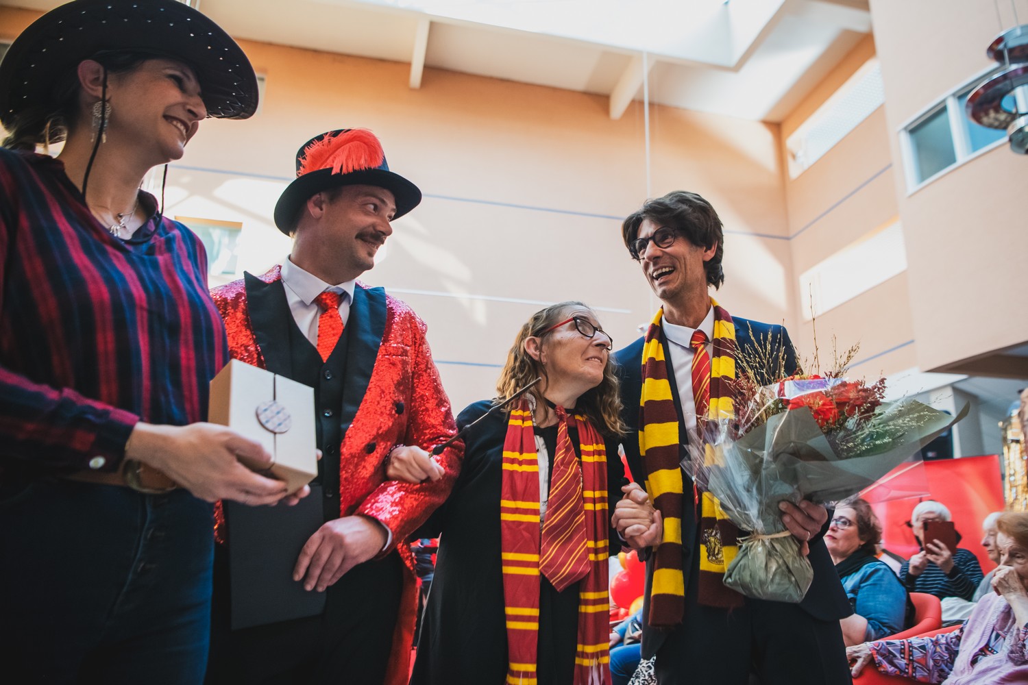 Au total, 12 duos ont participé sur la base du volontariat. « C’est primordial de créer du lien ainsi, précise Hervé Fureix, directeur de l’établissement, que l’on a quand même reconnu camouflé sous les traits du plus célèbre sorcier de l’école Poudlard. C’est une manière de renforcer la relation humaine et de sortir du simple cadre de l’accompagnement et du soins ».