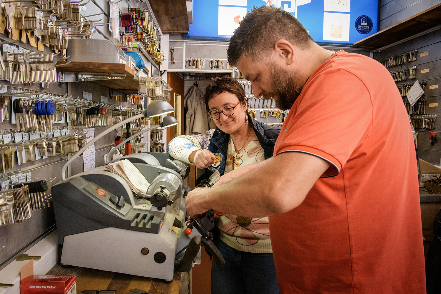 Depuis la reprise, il a recruté Virginie en 2023 pour être plus disponible pour les interventions à domicile et a procédé à l’agrandissement de sa boutique avec un espace quincaillerie de proximité. Toujours heureux de rendre service aux clients, l’enseigne propose de refaire tous les types de clés, même les plus anciennes. Quant au dépannage, il s’engage à intervenir au plus vite, même si l’impatience reste forte quand la serrure fait des siennes.