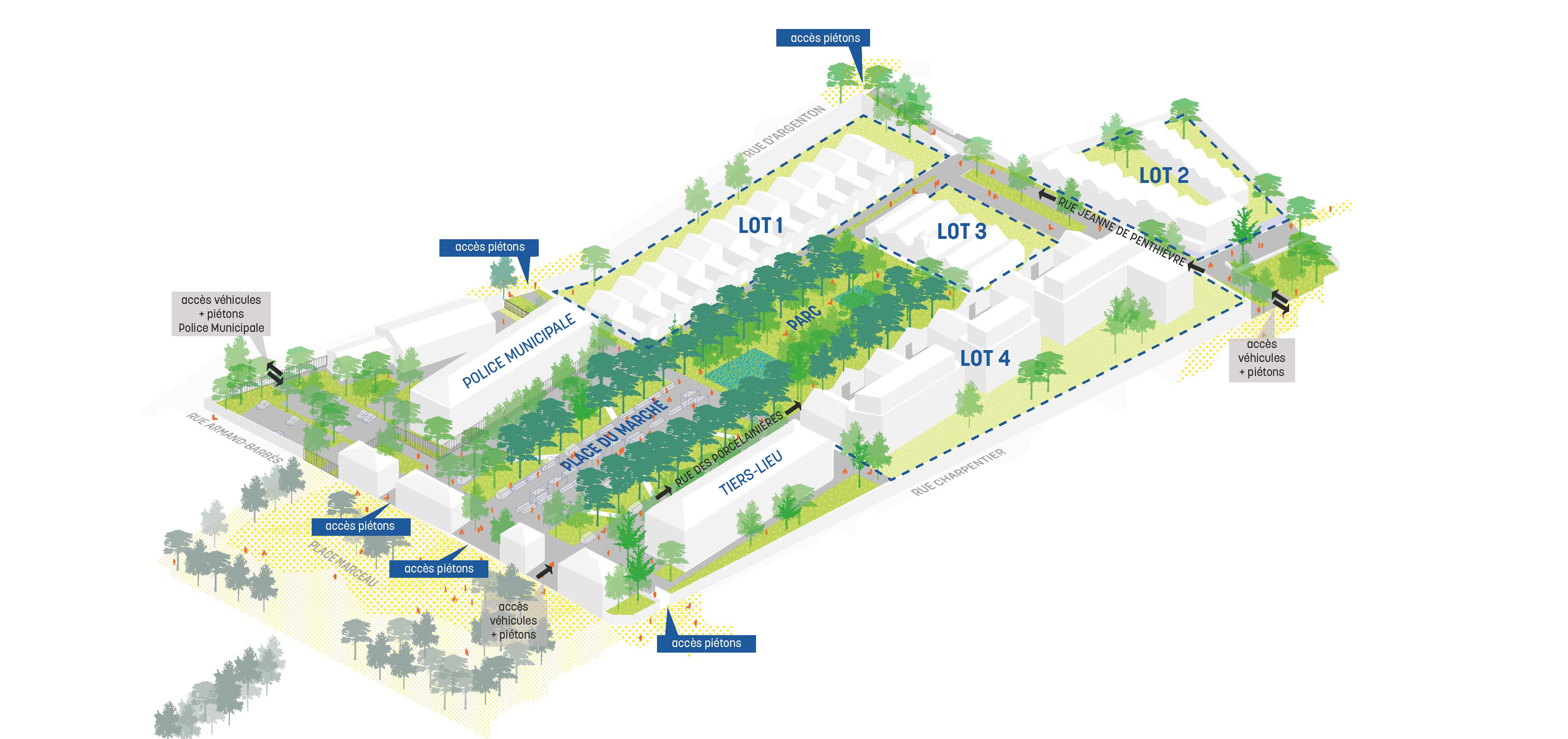 Un appel à projets a été lancé pour construire des logements et installer une offre de services et de commerces au Pavillon de l’horloge qui sera réhabilité (lot 3). Orchestré par le promoteur Altana promotion, le projet prévoit aussi de construire des maisons individuelles sur le premier lot, et des maisons individuelles ainsi que des logements, dits intermédiaires sur le second. Sur la parcelle du côté de la rue du Chinchauvaud, (lot 2) 4 immeubles collectifs de 3 étages sont attendus.