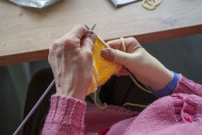 « Pour tricoter, il faut choisir les aiguilles en fonction de l’épaisseur de la laine », ajoute sa voisine. « Après il y beaucoup de techniques et de points différents : le