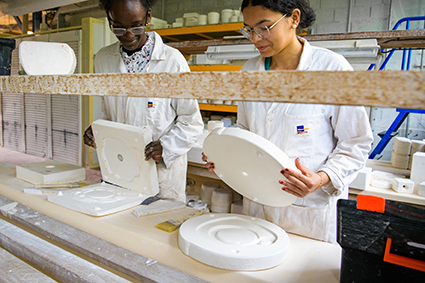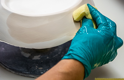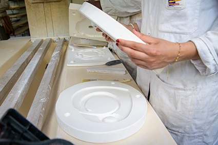 Après la confection des moules en plâtre, la barbotine y est coulée.