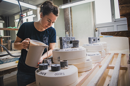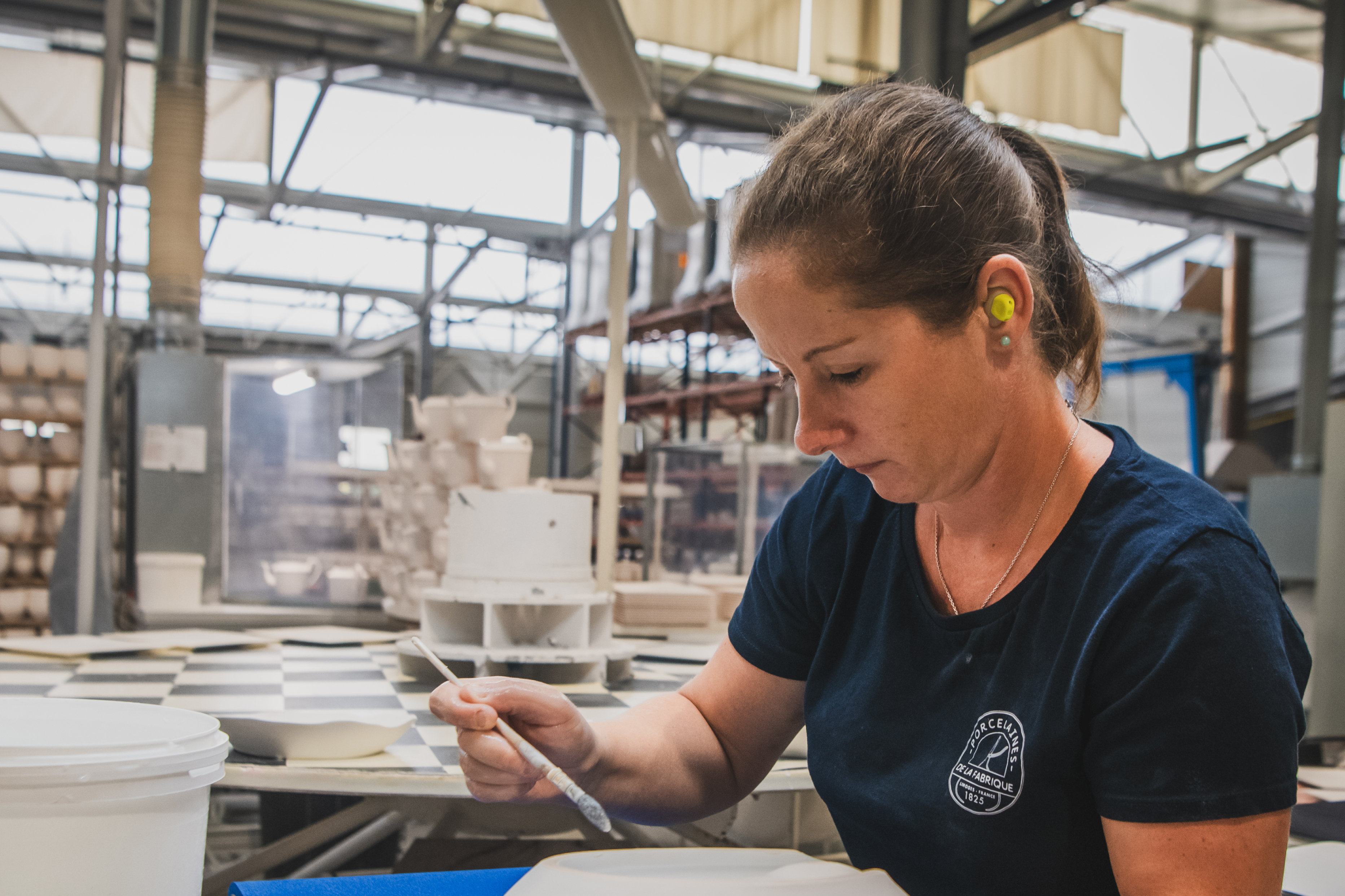Une fois le lauréat sélectionné par le jury, c’est la manufacture La Fabrique qui a réalisé l’assiette en série, en reprenant tout le circuit de création, étape par étape.
