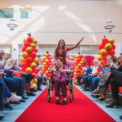 Sandrine Van Eunen, médecin coordonnateur, a elle-aussi défilé en binôme. « Aujourd’hui, insiste-t-elle, l’animation est faite avec les professionnels du Roussillon et non plus par les professionnels de l’EHPAD ! » Un détail qui change finalement beaucoup de choses, même pour les familles qui voient leur parent dans un autre contexte. Gérard est de cet avis. « J’ai réussi à convaincre mon père de défiler cette année. L’année dernière il n’avait pas voulu, explique-t-il. J’ai conscience qu’organiser une animation comme celle-là n’est pas facile, mais cela permet de mettre en valeur les anciens qui jouent leur rôle, même à presque 100 ans, conclut-il.