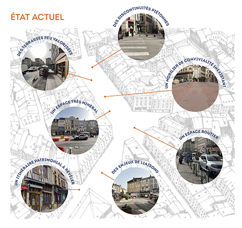 Le périmètre du projet s’étend sur plus de 6 500 m2 : des abords de la place de la Motte, jusqu’à la place du Poids-public et la partie haute de la rue Élie-Berthet, sans oublier la rue Lansecot.