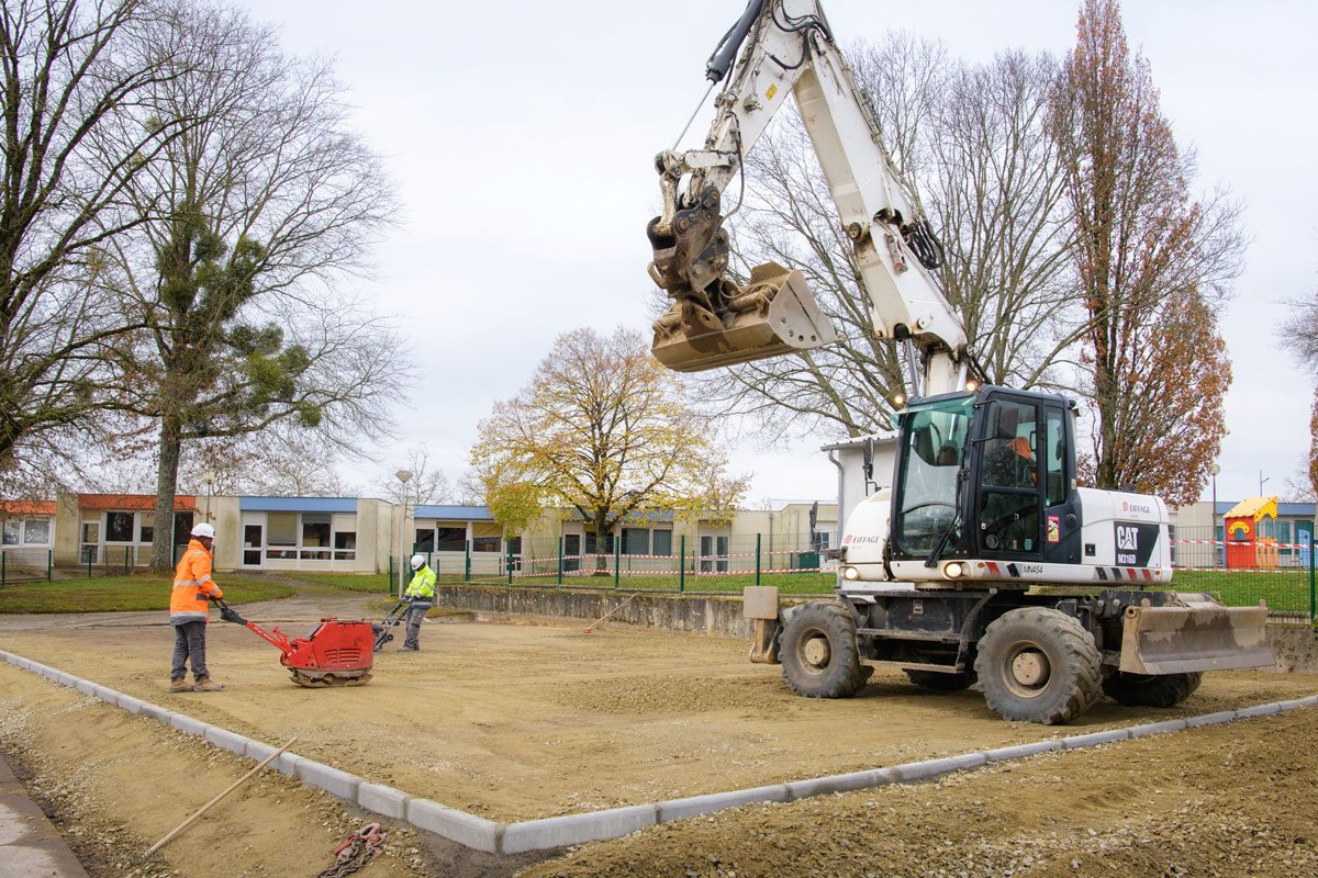 Les travaux qui ont commencé en novembre pour un mois prévoient donc la création d’un terrain mixte foot/basket. Le parking quant à lui se situe entre l’école maternelle et l’école élémentaire.