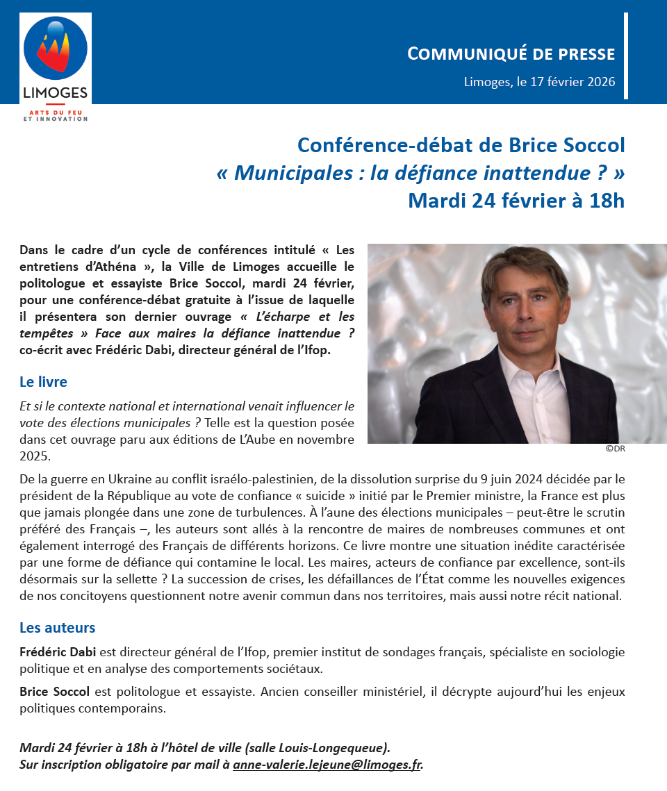 Le service de presse est à disposition des journalistes afin de répondre à leurs demandes d’informations relatives aux actions et manifestations organisées par la Ville de Limoges. Il peut également les mettre en relation avec la (ou les) personne(s) concernée(s) afin d’approfondir un sujet concernant l’action municipale.