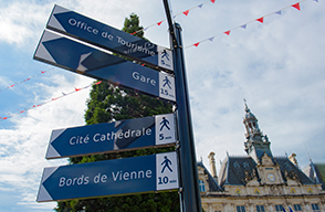 Cyclistes, profitez des bords de Vienne. Depuis 2016, la circulation des vélos en bords de Vienne est autorisée sur la rive gauche. L’espace public est partagé avec les piétons et les automobilistes. Les zones sont clairement identifiées avec une signalétique dédiée.
